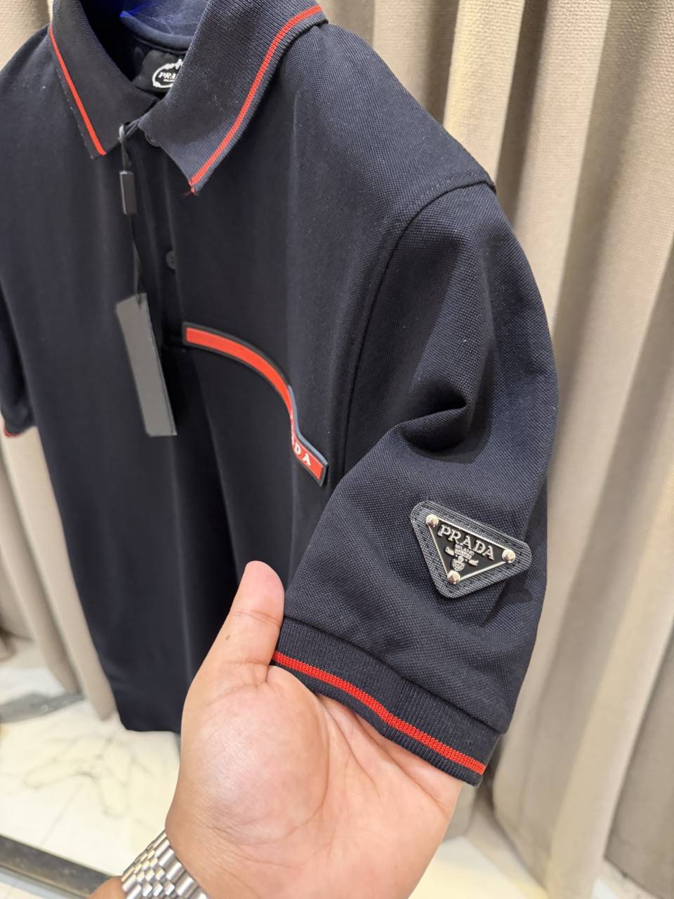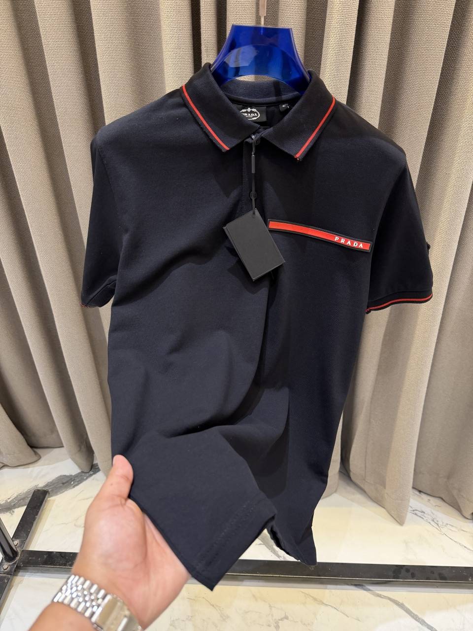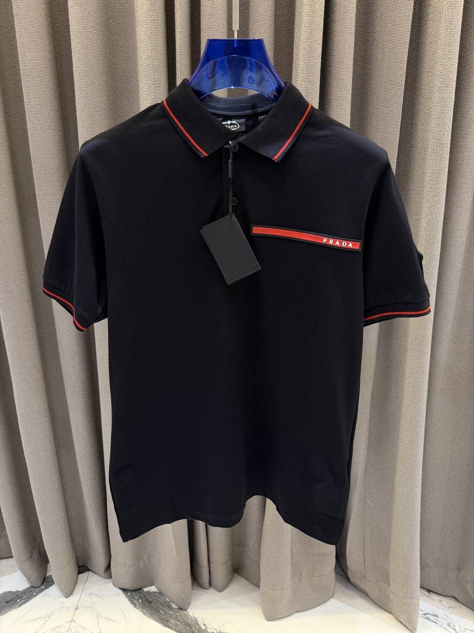 Prad_a Premium Side Embossed Logo Polo Black